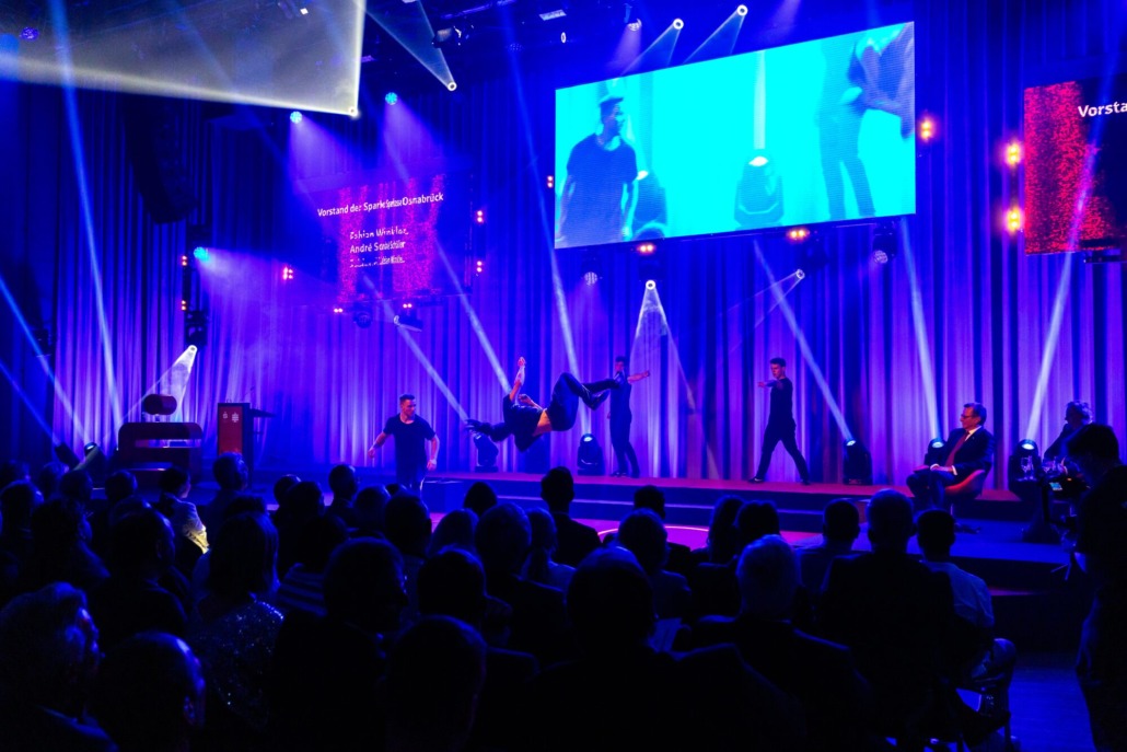 Beide Festakte wurden von der renommierten Moderatorin Julia-Niharika Sen begleitet und boten ein abwechslungsreiches Programm mit besonderen Höhepunkten. Das Osnabrücker Symphonieorchester führte die Gäste musikalisch durch den Abend. Eine eindrucksvolle Parcours-Showeinlage sowie mehrere Überraschungsgäste, die persönliche Worte an die Sparkasse Osnabrück richteten, sorgten für emotionale und unvergessliche Momente.